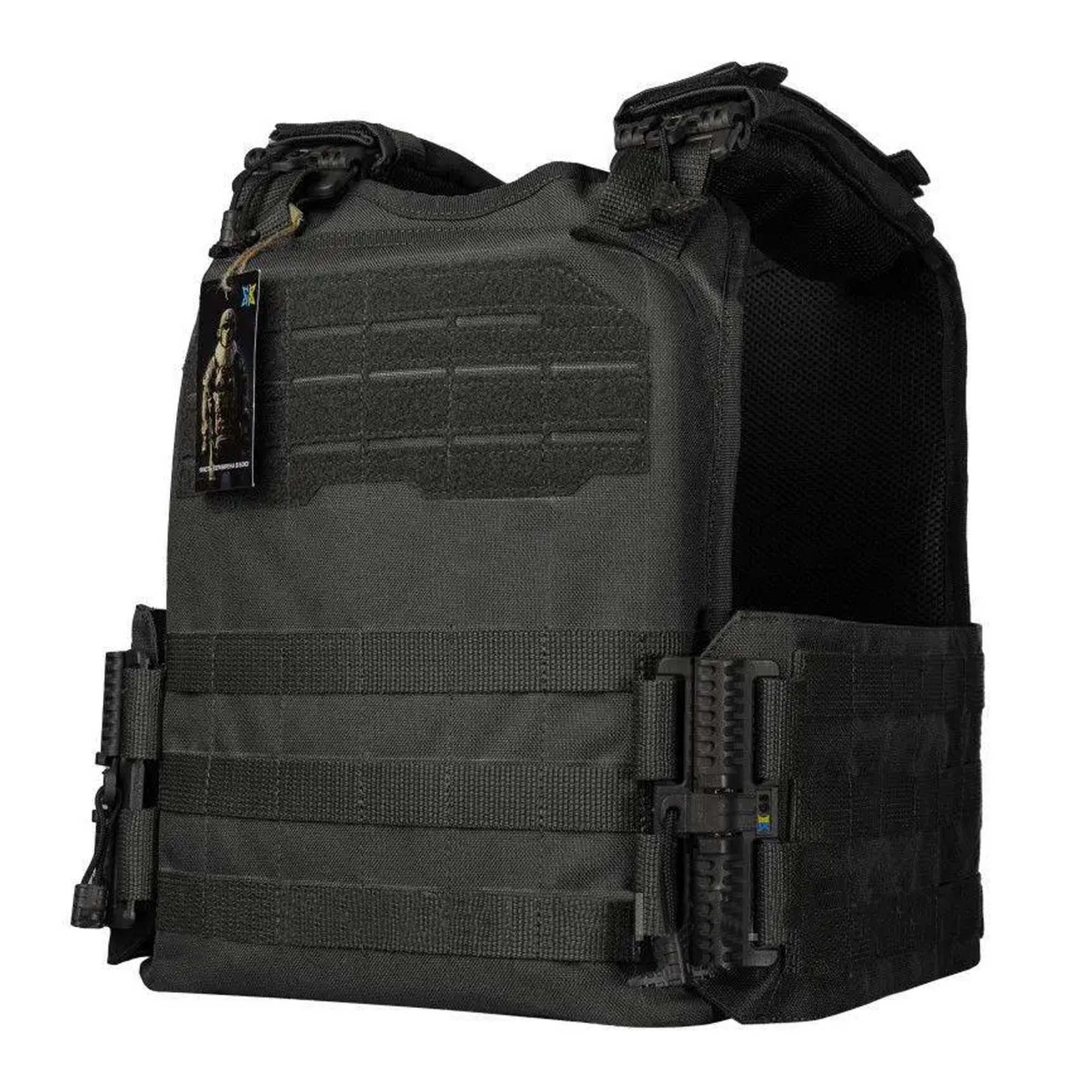 Black plate carrier vest from the Ukrainian Army manufacturer is equipped with a double quick-release system and a full MOLLE system. The WARMOR Gen. 2 tactical vest is used with standard 25 x 30 cm (9’8 x 11’8 inches) NATO plates and adjusts for sizes S to XL.