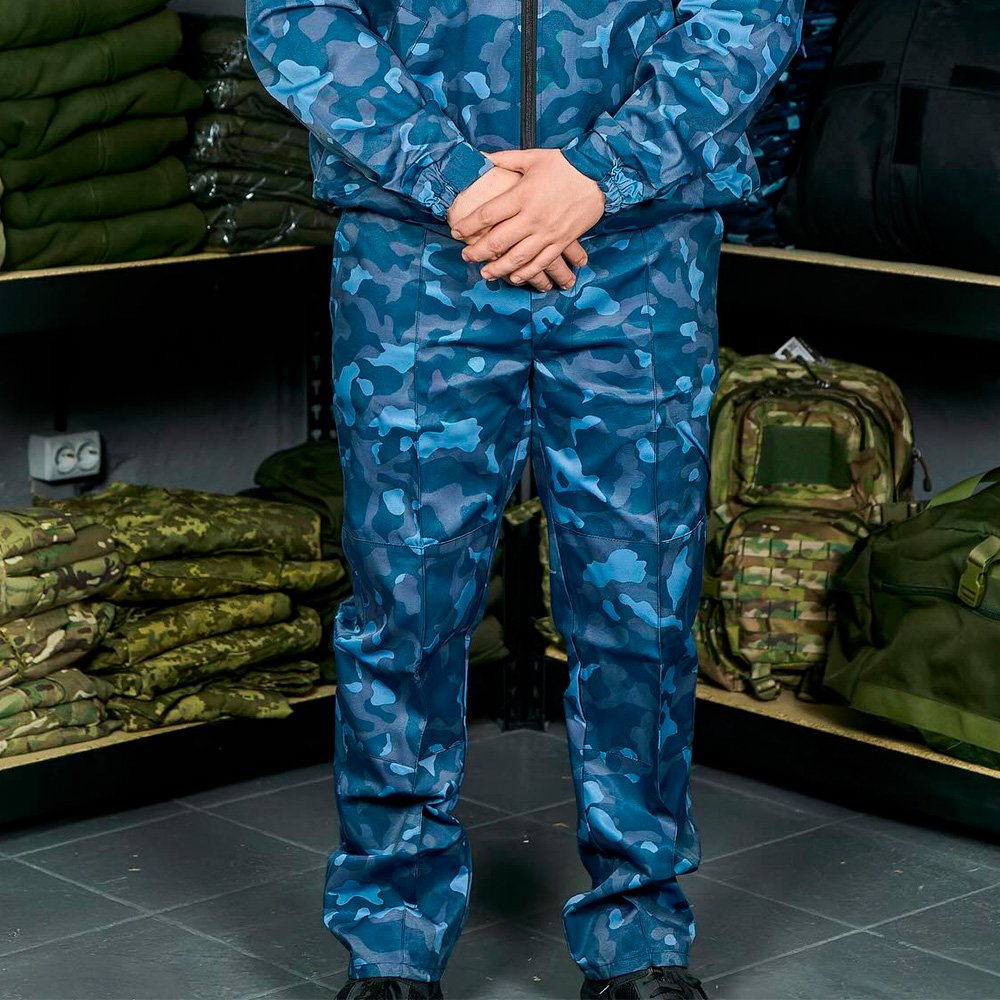 Designed with a modern blue camouflage pattern, these pants provide effective concealment and high mobility. Reinforced stitching, a comfortable waistband, and roomy pockets ensure functionality during training, patrol, airsoft, or fieldwork.