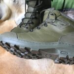 These boots are light and comfortable , right out of the box . The soles are sturdy rubber with good grip . Recommend 👍